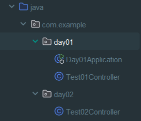 위의 파일 구조에서 @SpringBootApplication이 붙어있는 Day01Application 클래스가 있기 때문에