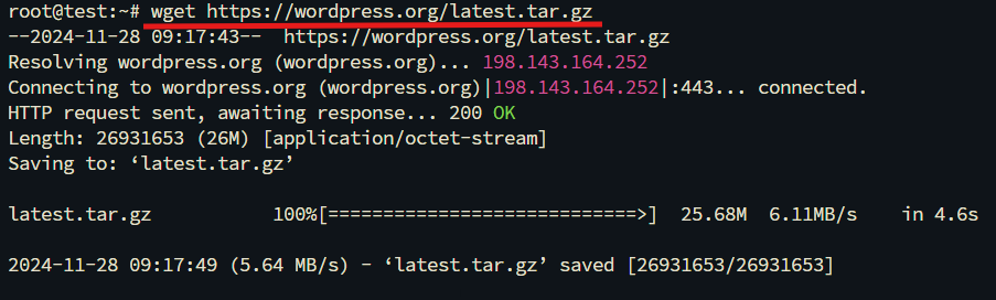 wget https://wordpress.org/latest.tar.gz