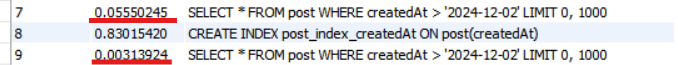EXPLAIN SELECT * FROM post WHERE createdAt > '2024-12-02';