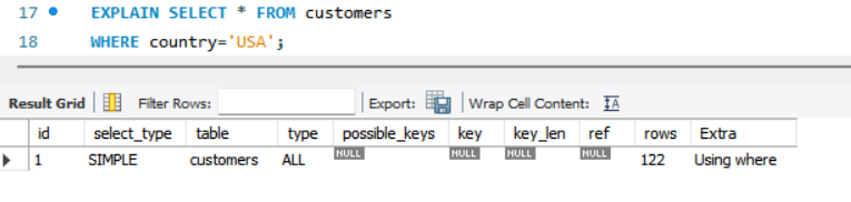 SELECT 앞에 EXPLAIN을 붙이면 데이터를 얼만큼 찾아보고 찾아냈는지, 찾아본 데이터의 수가 총 몇 개인지 설명해준다.