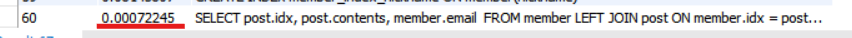 SELECT post.idx, member.email AS writer, contents, post.createdAt