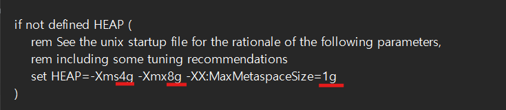 Jmeter.bat 파일을 메모장으로 연 후 아래 부분을 4g - 8g - 1g로 설정한다.