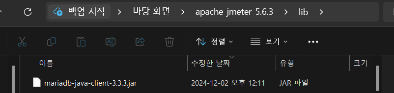 jmeter폴더 lib 폴더에 mariadb jar 파일 붙여넣기