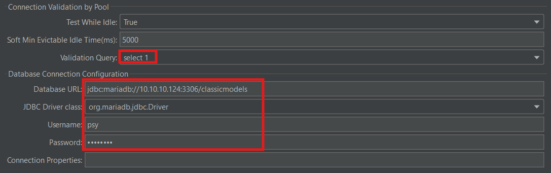 Variable Name of Pool declared in JDBC Connection Configuration : dbpool (아까 설정한 pool 이름)