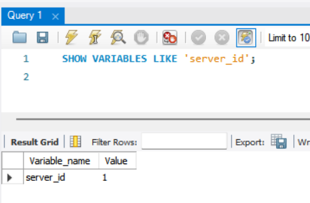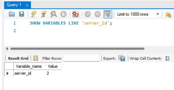 워크벤치에서도 sever_id = 2로 잘 뜬다.